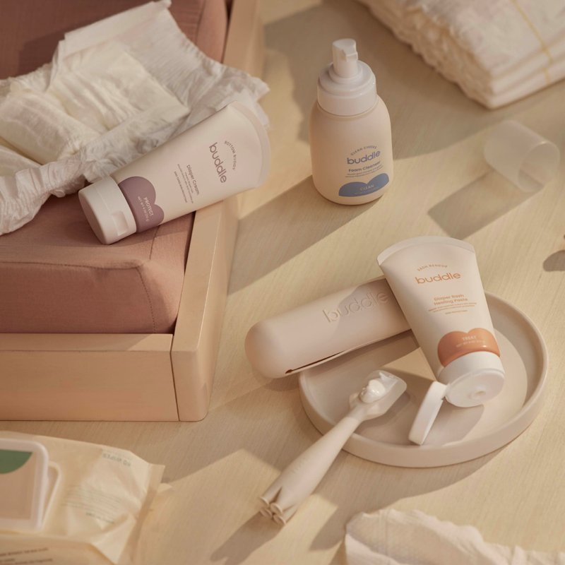 Don’t Just Treat Diaper Rash, Prevent It Did you know a newborn’s skin is different than adult skin? It can be up to 10 times more sensitive, 30% thinner, and has reduced moisturizing and skin lipid production — meaning that sweet soft baby skin is more susceptible to irritation. We Took On Diaper Rash So You Don’t Have To Scientific understanding doesn’t just make a difference, it makes all the difference. With a deeper knowledge of infant skin, the diapering environment and the microbiome, we’ve been able to uncover the underlying causes of diaper rash and how to prevent it in three easy steps. Preventing Diaper Rash is as Easy as 1-2-3 As much as we all want one solution, what we found through our research, development, and clinical trial is a system approach yields better outcomes when it comes to the treatment of diaper rash which led to the development of our three product system. Each Buddle product is a diaper bag essential and plays a specific role in the prevention of diaper rash—cleanse, prevent, and treat. Clean Cheeks Foam Cleanser – Remove impurities Bottom Buddy Diaper Cream – Protect & nourish skin barrier Rash Rescue Diaper Rash Healing Paste – Heal with maximum-strength zinc oxide Paddle Pal Diaper Cream Applicator – The perfect companion to apply Bottom Buddy and Rash Rescue.