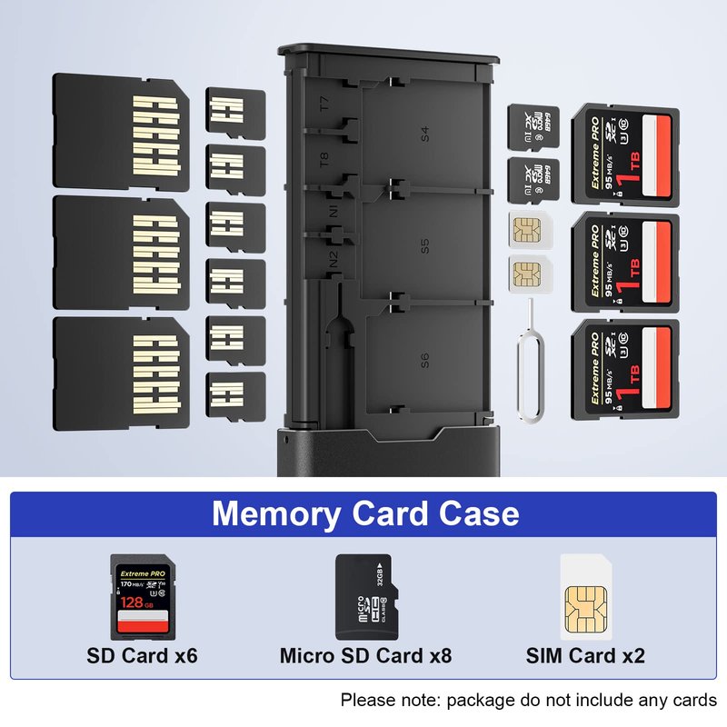 - 【Large Capacity】 It can store 6 SD cards and 8 Micro SD cards, which is convenient for storing memory cards of cameras, action cameras, drones and mobile phones. It is an auxiliary product for photographers.