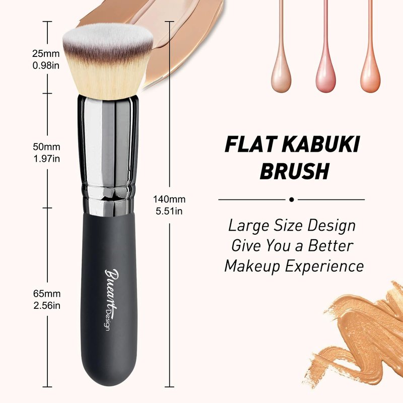 - 【Extra Larger Size For Fast buffing 】The Flat Top Kabuki Brush head contains More than 7200 hairs count delivers the most effective distribution of foundation cream, allowing you to build perfect coverage more fast and effective while buffing and blurring away the wrinkles,pores, fine lines, and speckle.