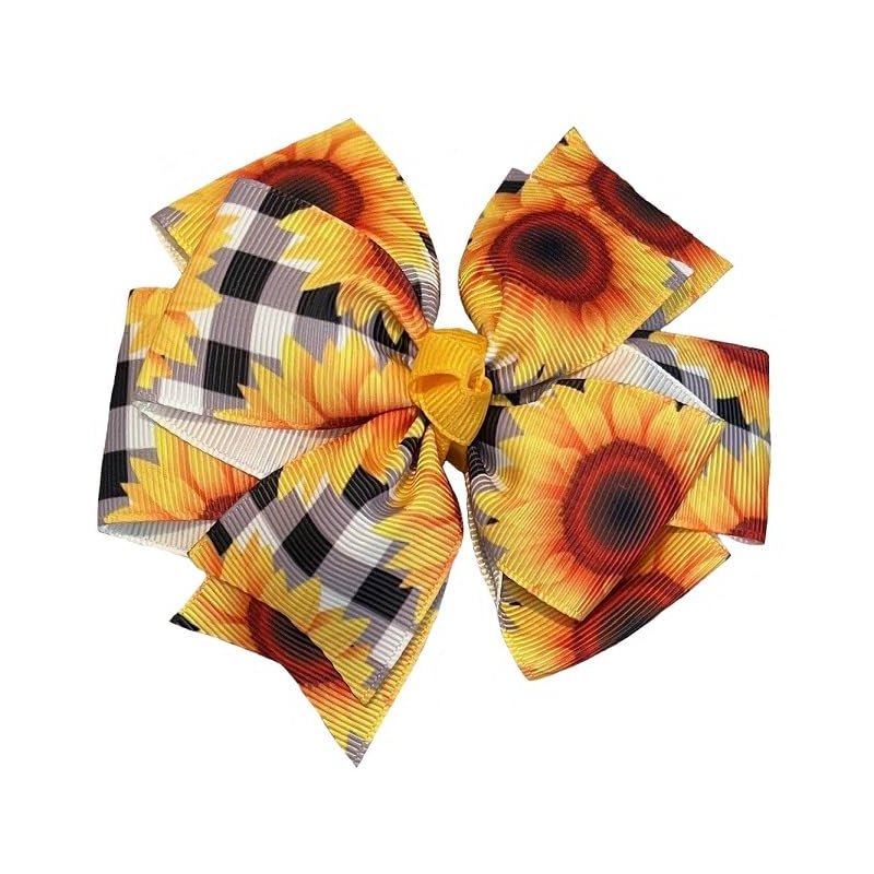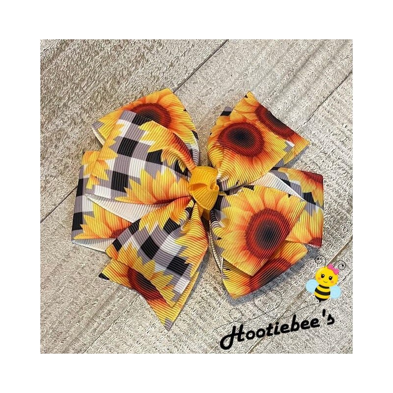 Buffalo Check Sunflower Pinwheel Hair Bow