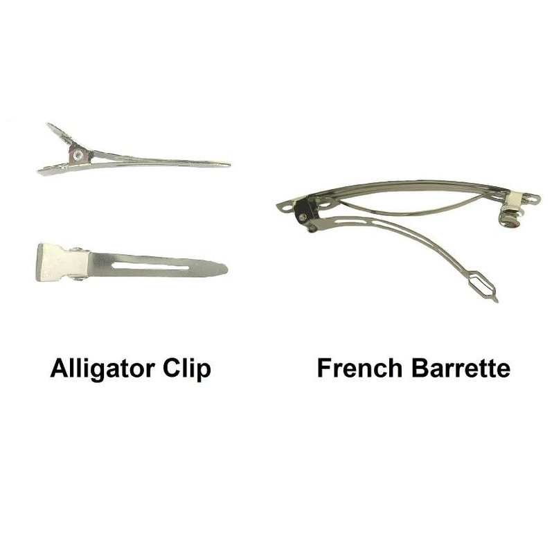 This is a 2-layer hair bow. It can be mounted on a large (3") french barrette OR a partially lined alligator clip. The bow measures approximately 4 to 4.5 inches wide.