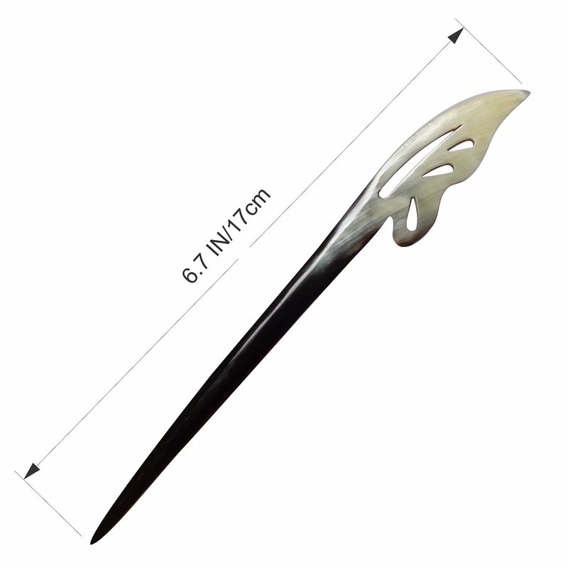 - GOOD MATERIAL: Our hair stick for women are made from natural buffalo and cow horn. The horn material has the same composition and properties as your hair, so it doesn't cause an electric charge and damage your hair. Natural horn color does not use chemicals or paints, so each brooch will have different colors and patterns, no two identical pieces.
