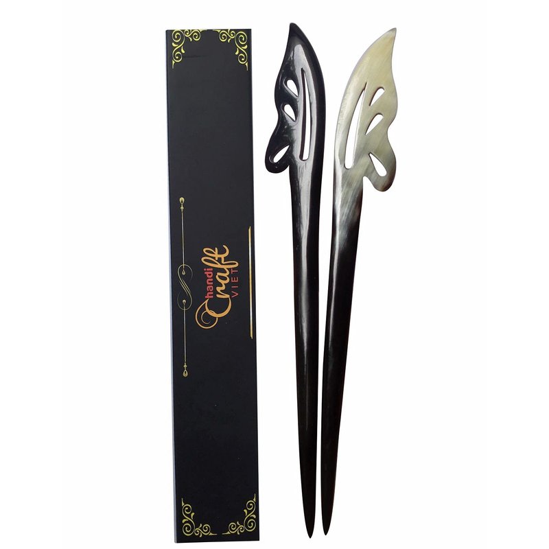 Buffalo Horn Hair sticks, Handmade Hair Sticks are Carved by Hand, Hair chopstick for Buns Hair Chopsticks for Women, Natural horn (Butterfly hair sticks black)