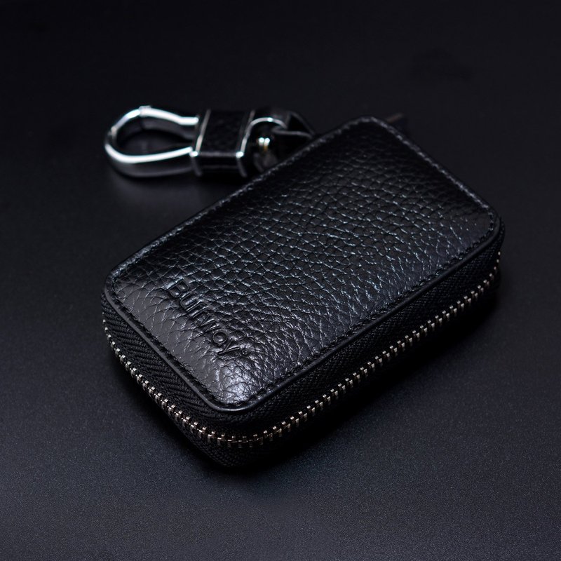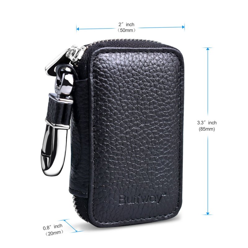 Buffway Car Key case,Genuine Leather Car Key Chain Keychain Holder Metal Hook and Keyring Zipper Bag for Remote Key Fob - Black
