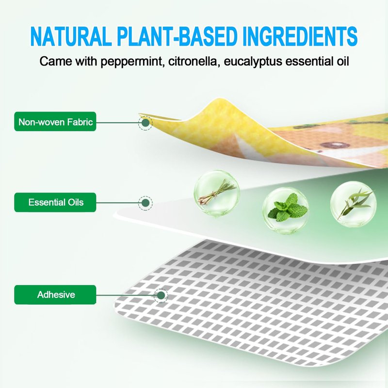 - Natural Plant-based Ingredients: The mosquito repellent stickers are came with peppermint, citronella, eucalyptus essential oil. Safe for kids, babies, adults and even pregnant women.
