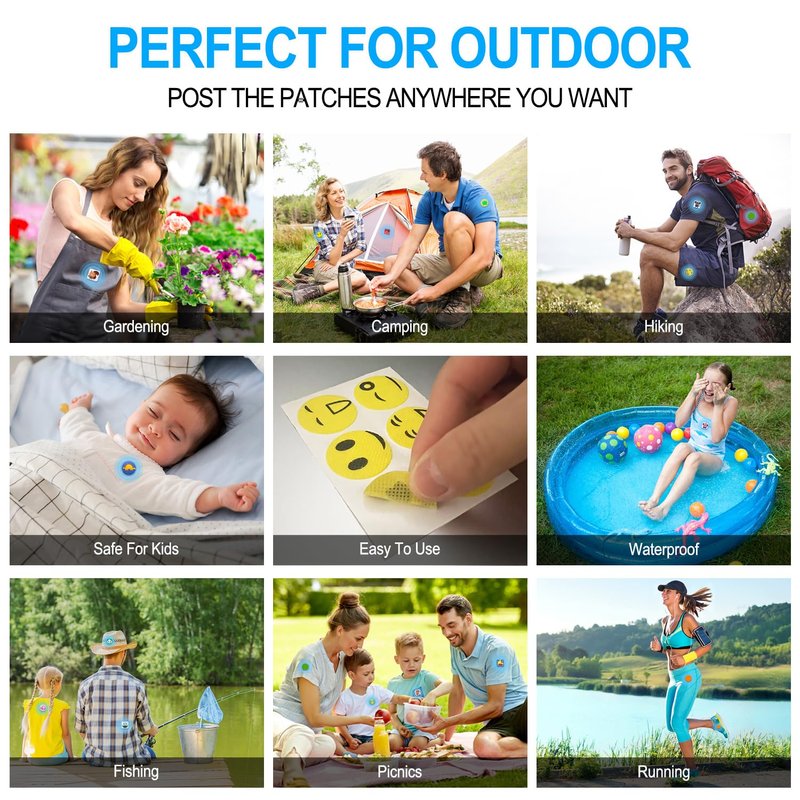 - Easy to Use: You just stick the mosquito repellent patches on hat, cloth, pant, sock, shoe, bag, cup, table, sofa, stroller, toy, tent and anywhere you want. Protect you from mosquitoes in all aspects!