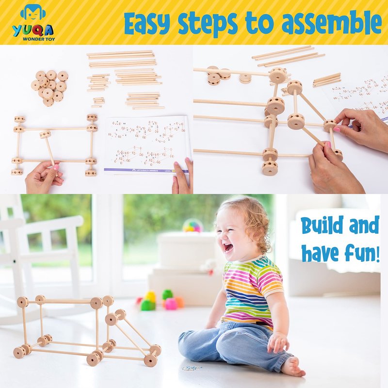 - Highly Rated Construction: Enjoy this creative toy with peace of mind! The building blocks are made of pure wood, smooth finished, splinter-free, and large size; They don't contain harsh substances and are risk-free to use by children;