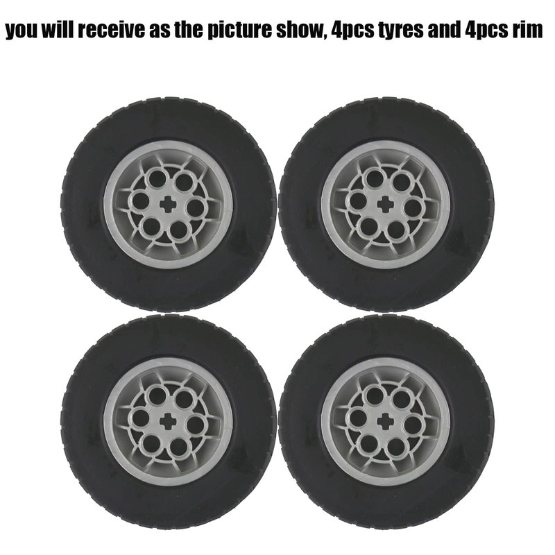 Building Blocks Technic Parts 4 pcs TYRE Dia. 62X20 & Rim Dia. 43.2 X 18 Compatible with Lego for Kids Boys Toy