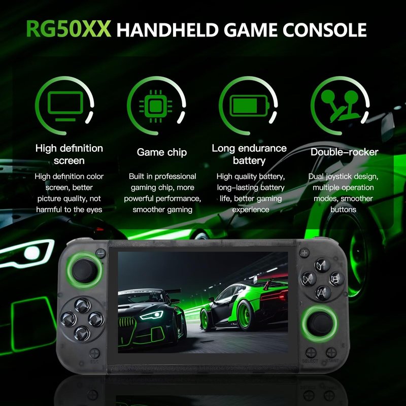 - Portable Game Console with 64G Card + MP4: The handheld video game console comes with a 64G card that supports expansion up to 128G, making it easy for you to download games and files, and the RG50XX game emulator also has an MP4 function, which you can use to listen to music and play videos, making your trip more fun