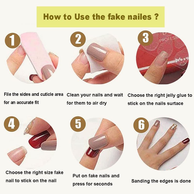 - 💃【SIMPLE OPERATION】💃: Just clean your nails, then choose the right nail size, stick double-side adhesives on nails and press for 20 seconds, you can have beautiful nails in just a few simple steps. Will last for several day with normal care, use glue will last longer