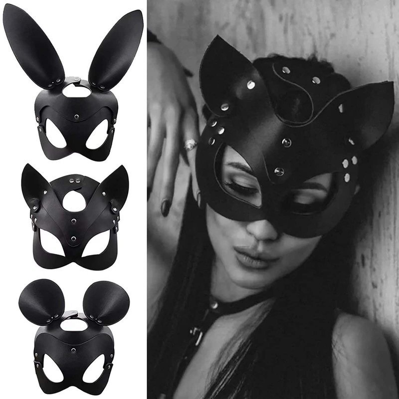 Bulex Woman Leather Cat Mask Costume Bunny Fox Cat Women Masquerade Masks,Animal Half Face Mask Cosplay Halloween Party Ladies