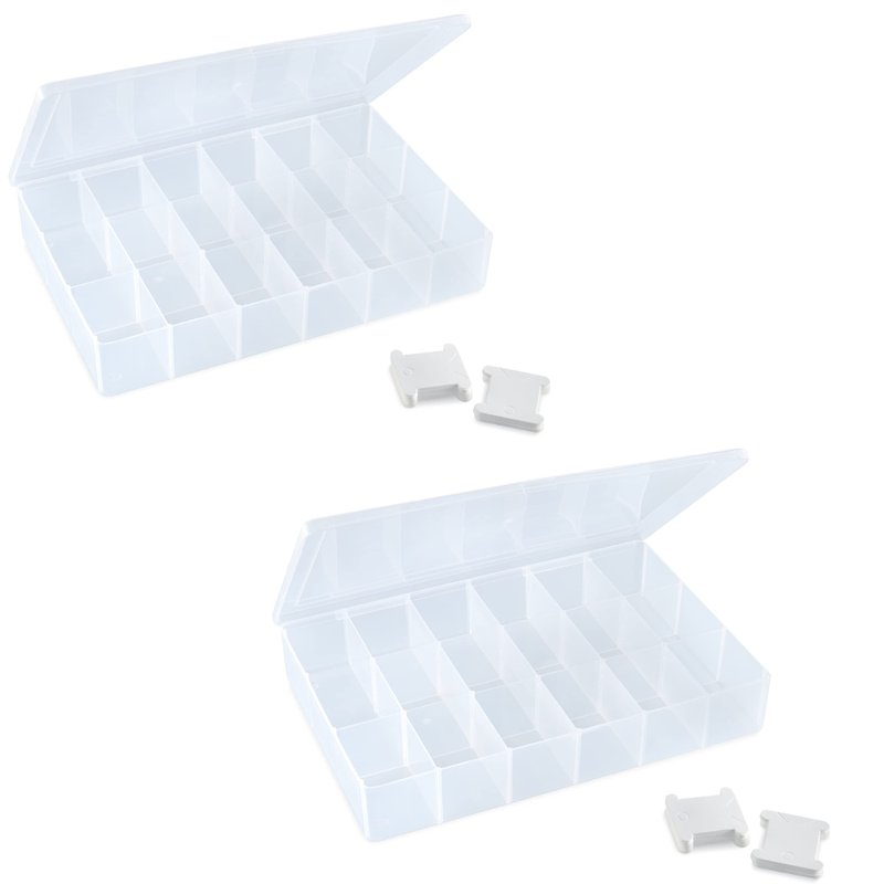BULK PARADISE Pack of 2 Embroidery Floss Organizer Box with 50 Cardboard Bobbins - 17 Compartments Clear S Organizer Storage Case, 10.25” x 7” x 1.75” – Snap-Tight Bead Holder, (Made in USA)