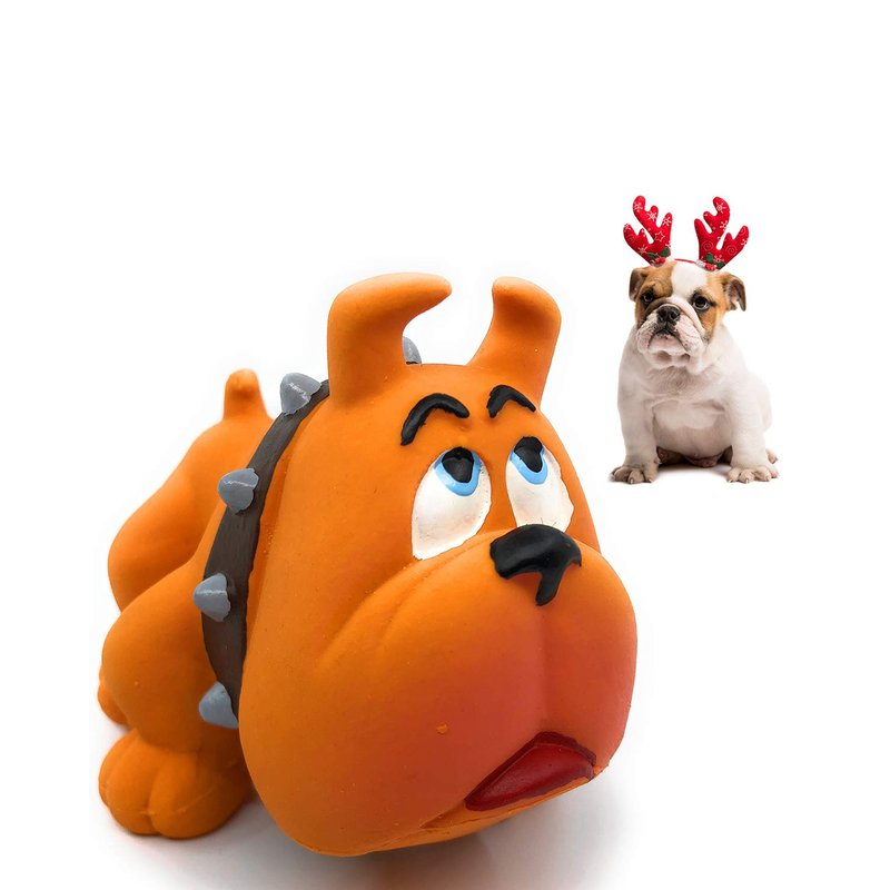 Bulldog - Squeaky Dog Toy - Soft, Natural Rubber (Latex) - for Puppies, Small Dogs & Medium Breed - Indoor Play - Complies with Same Safety Standards as Baby Toys