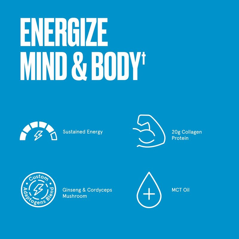 - Support an energized mind and body with a blend of adaptogens and energy nutrients, including ginseng, cordyceps, magnesium and MCT oil