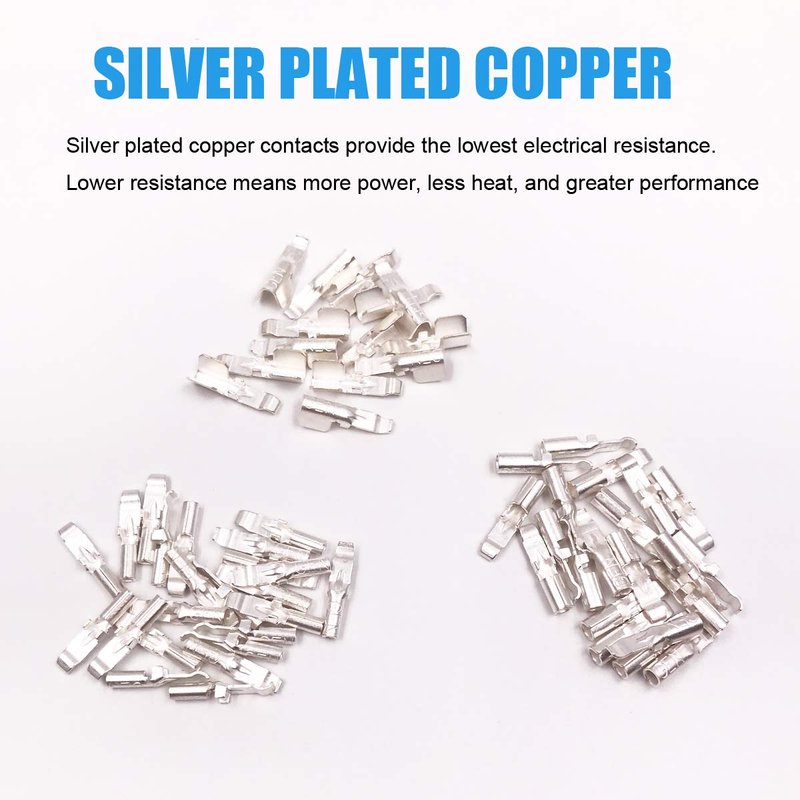 - 【Low Resistance Connection】Silver plated copper contacts provide the lowest electrical resistance.Lower resistance means more power, less heat, and greater performance.
