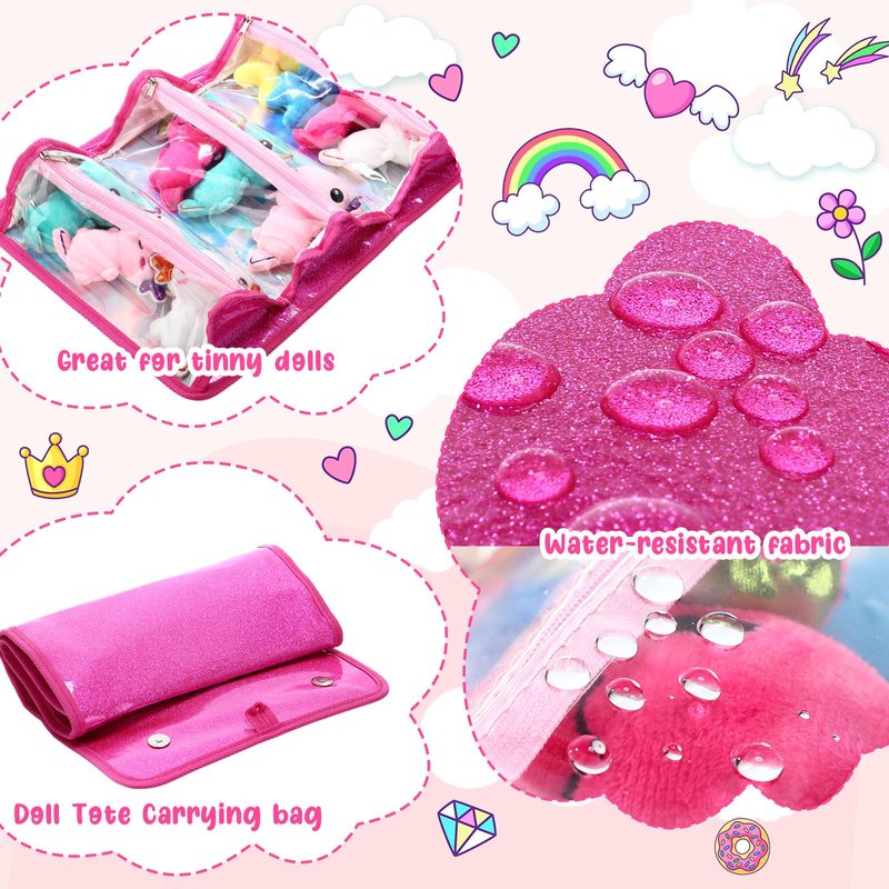 Bulyoou Doll Storage Organizer Display Case Compatible with All Dolls, Tote Carrying Case Organizer for Dolls, Clear View Hanging Case for Girls Christmas Birthday Gifts(Pink,Unicorn)