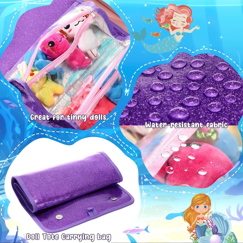 Bulyoou Doll Storage Organizer Display Case Compatible with All Dolls, Tote Carrying Case Organizer for Dolls, Clear View Hanging Case for Girls Christmas Birthday Gifts(Purple,Mermaid)