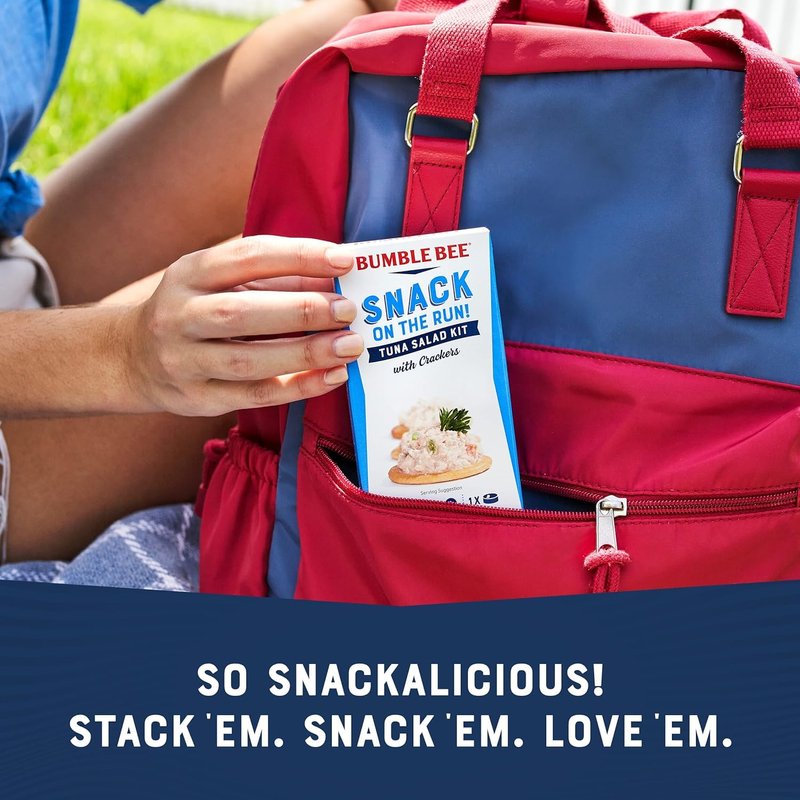 - DELICIOUS TUNA SNACK WITH CRACKERS: This 3.5 ounce Bumble Bee Snack on the Run! Tuna Salad with Crackers Kit will satisfy you and your family whenever you want a tasty tuna snack or quick lunch on the go