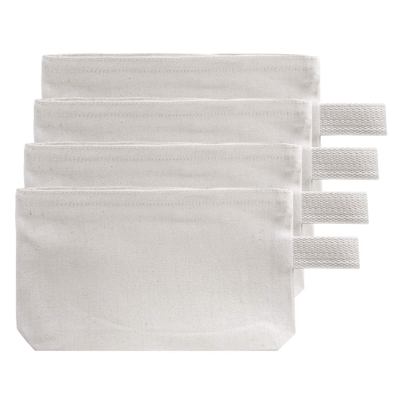 - SET OF 4 CANVAS ZIPPER MAKEUP POUCH: Beautiful blank makeup pouches are ideal for every crafter. Use these roomy bags as a base for your own decorations - embroidery, screen printing, cross stitch, needlepoint and fabric painting are perfect for these bags.