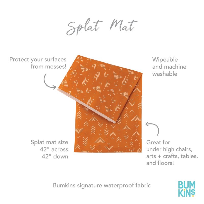 Bumkins Baby Splat Mat for Under High Chair, Babies Toddlers Eating Mess Mat, Waterproof Reusable Cloth for Arts and Crafts, Playtime Mat for Kids, Floors or Tables, Fabric 42inx42in, Boho Orange