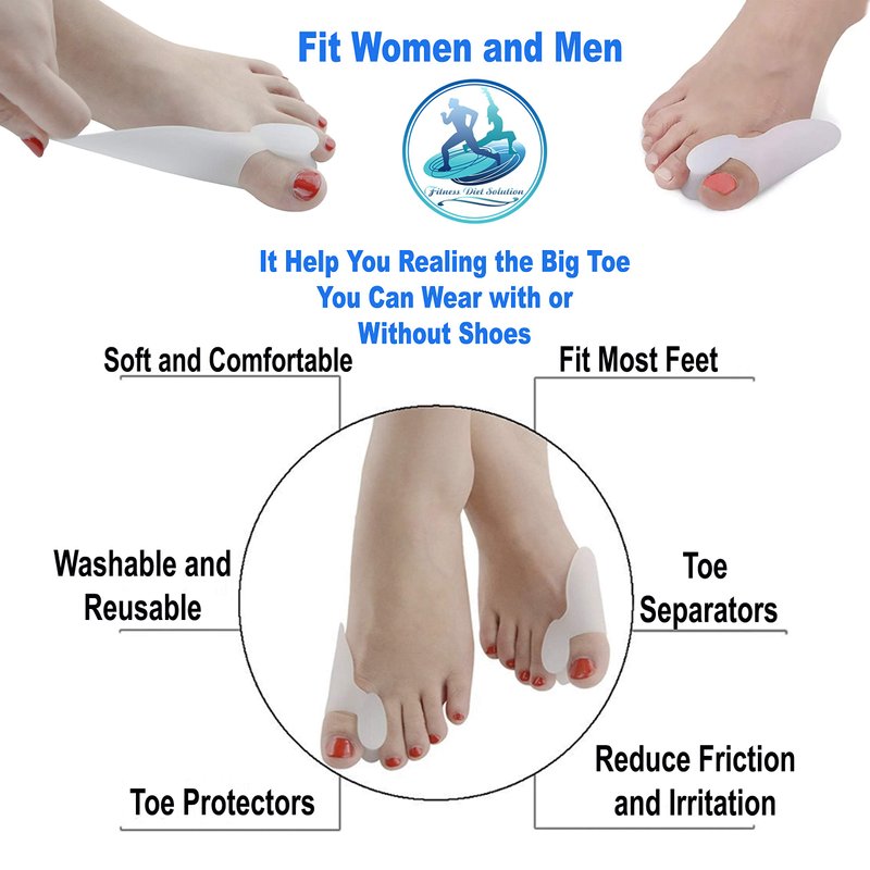 - ★ UNIVERSAL FIT & VERSATILE USE : Designed to fit any size comfortably with adjustable splints and sleeves to separate, straighten and align your toes. Wear silicone spacers and toe separators under your socks and shoes even while your at work and the splints when your at home watching TV or at night while sleeping