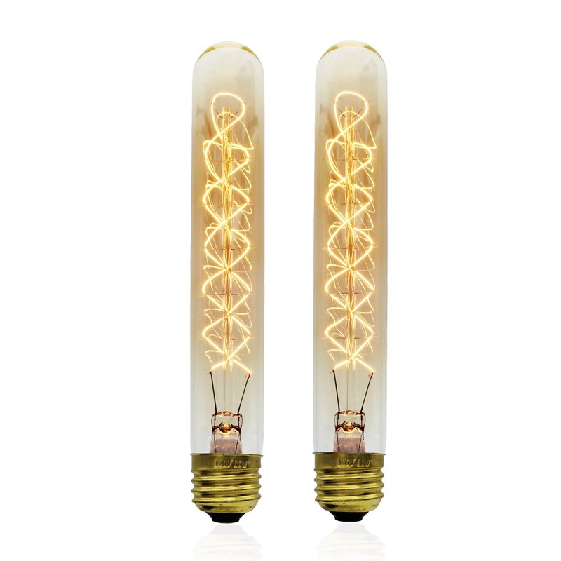 Bunnit Bulbs Vintage Edison Bulb, T9 T9-185 Tube Shape Spiral, 60w, Medium E26 Base, 2-Pack