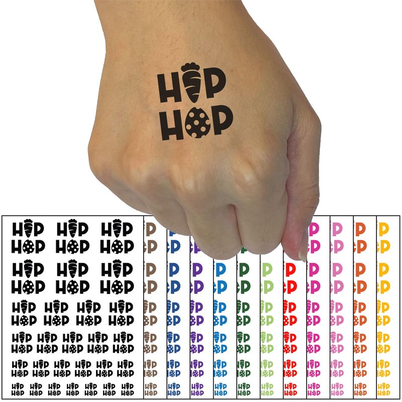 Bunny Hip Hop Carrot and Easter Egg Temporary Tattoo Water Resistant Fake Body Art Set Collection - Hot Pink (One Sheet)