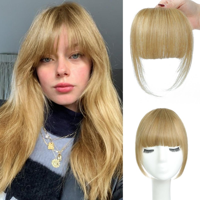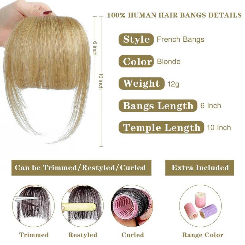 BUPPLER Clip in Bangs 100% Real Human Hair Pieces Hair Clip on bangs for women Faux Bangs Clip in Hair Extensions with Hair Roller for Daily Wear(5.5 * 6 Inch, Blonde)