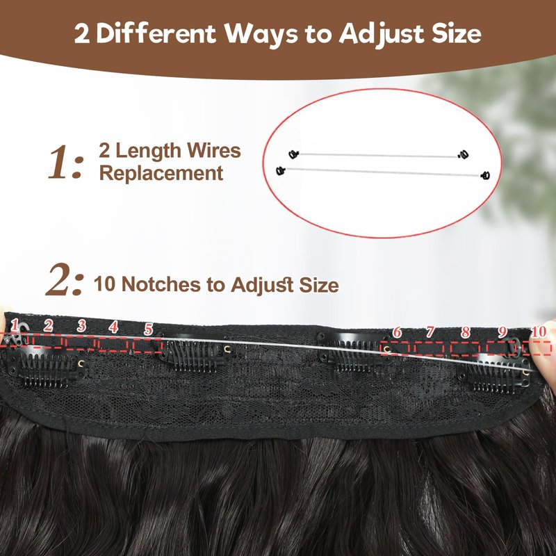 - Specification:Each halo hair extension pack includes:1 pc with 4 clip in wefts,2 replacement wires of varying lengths,10 adjustable notches for a perfect fit,4 BB clips for extra security, and a thicker,more elastic,and wire to reduce scalp pressure