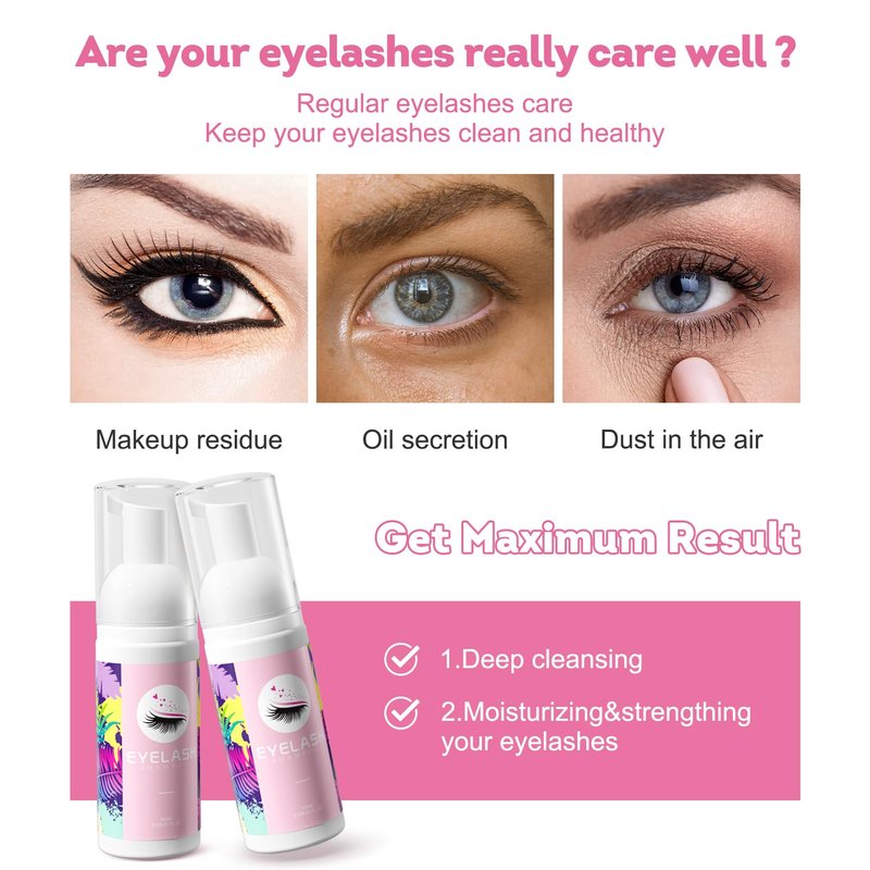 - 【Deep Cleansing】 Healthy and thorough cleansing is the key to beautiful lashes! Our premium gentle eyelash cleanser thoroughly cleans down to the roots of your lashes, leaving your lashes clean, fresh and fluffy. Eyelash extension remover also prevents any infections. And lash shampoo for lash extensions will keep your real and false lashes looking their best at all times.