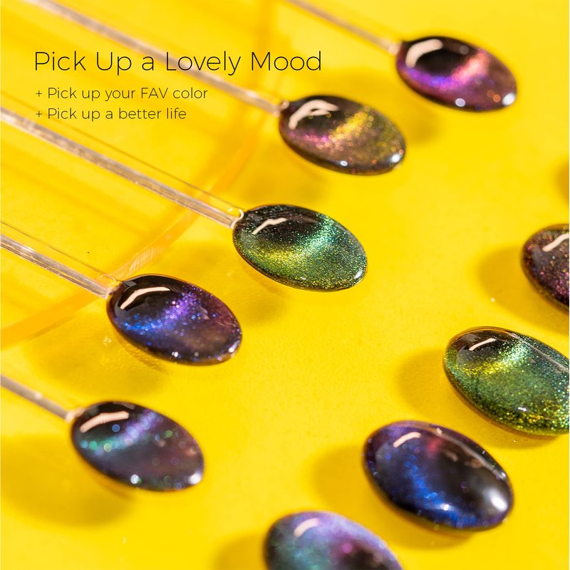- 9D Cat Eye Gel Polish Effect – 5 Colors magnetic gel polish and 1 black gel polish, suit for all nail art system, can work with all the gel polish, easily to build out cateye Chameleon effect.