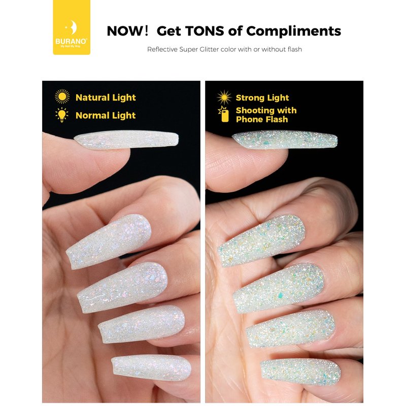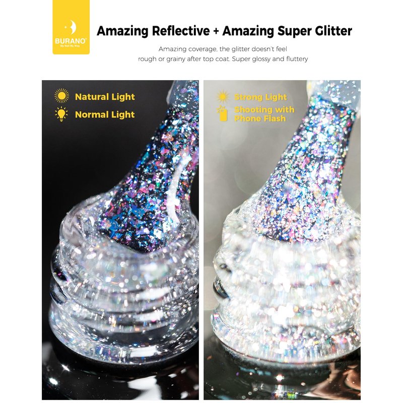 - 💙【Upgraded version sparkle gel nail polish】We have updated our gel nail polish, makes them more shining and smoother. You'll love it once you use it. BURANO glitter gel polish Reflective Sparkling Nail Polish is the best shining gel you haven’t ever used before.