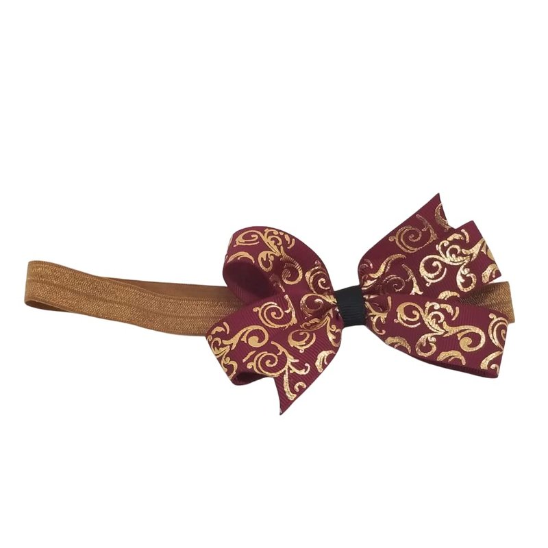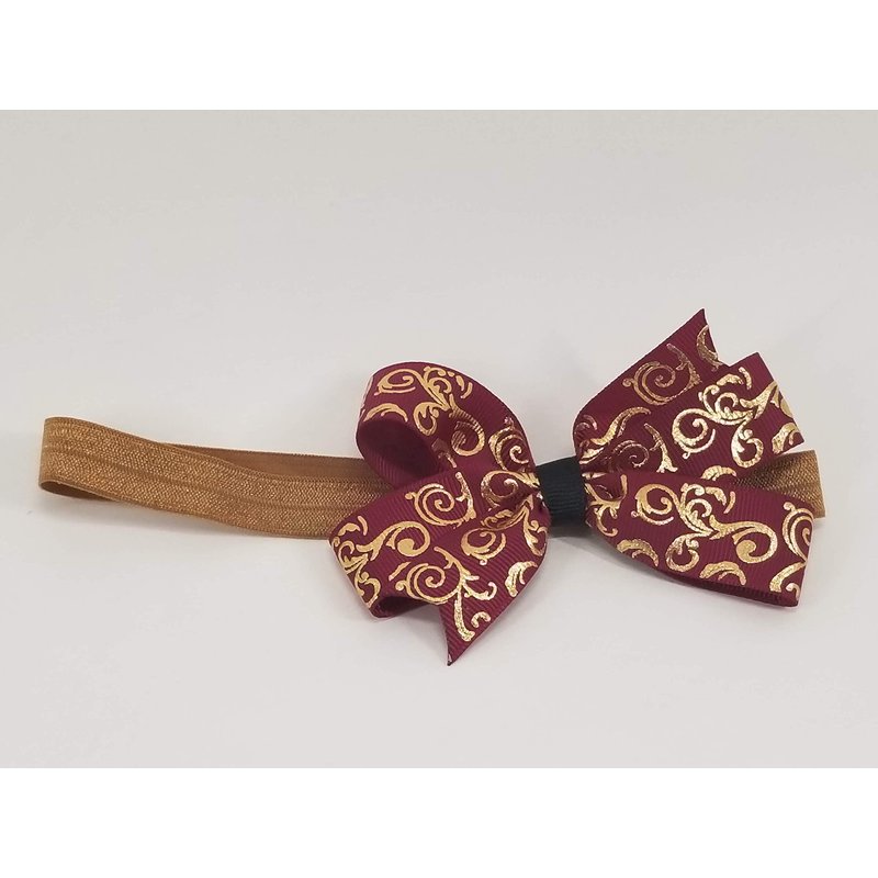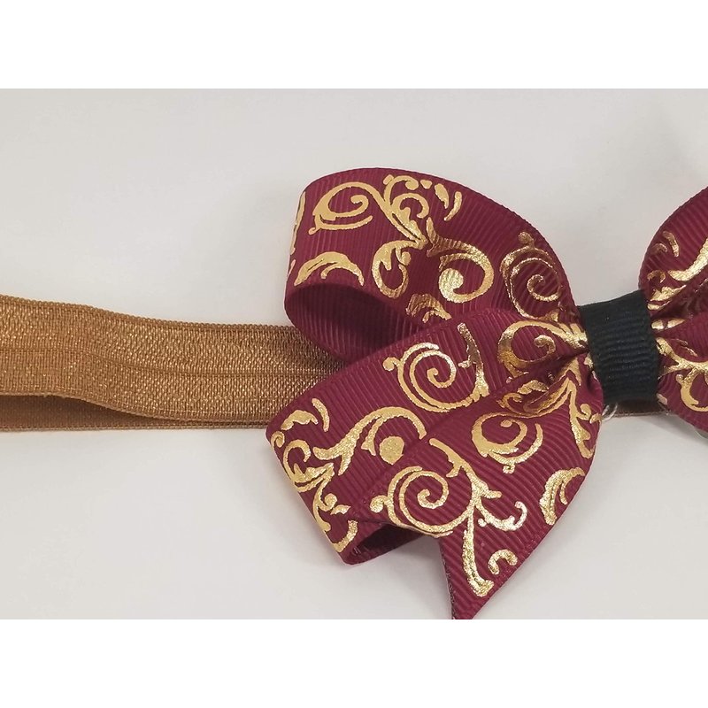 All my hair bows are made with quality decorative ribbons and sturdy metal alligator clips. They are a great accessory to many outfits. Alligator clips are great to keep the bows in the hair securely. Each hair bow measures approx. 3-5 inches across, and the headband ranges from 13" to 15" (0-6 mo to 6-18 mo) which you will choose before purchase. Each bow will vary slightly depending on where the pattern/logo lays out.