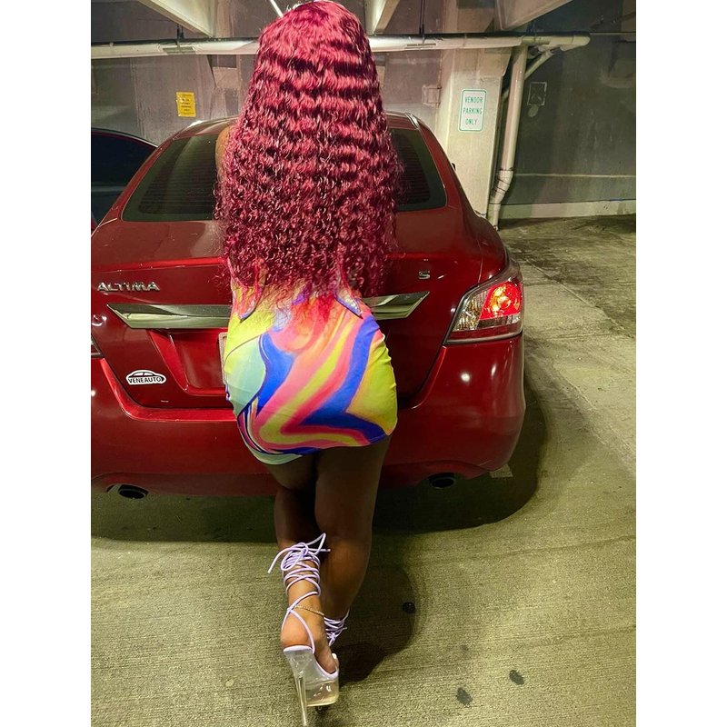 - Color: burgundy deep wave wig