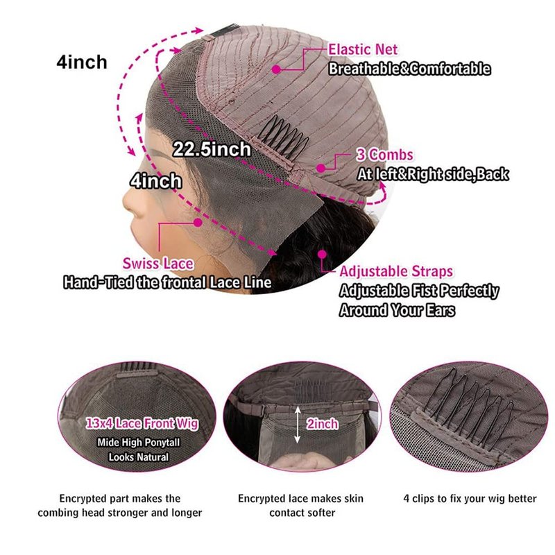 - Transparent Lace Frontal Wig: The 13x4 lace front wig has a transparent lace that blends seamlessly with your skin tone for an undetectable hairline.