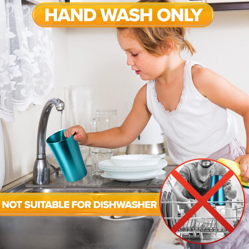- Kids Safe Metal Coffee Cups: The set of wine glasses is perfect for families with small children. The brightly colored coating of our small drinking glasses will attract attention and encourage you to drink. Our travel tumbler colored drinking glasses will provide you a perfect grip when you are drinking.
