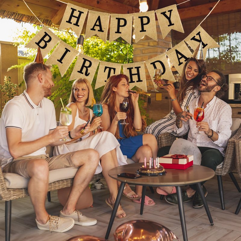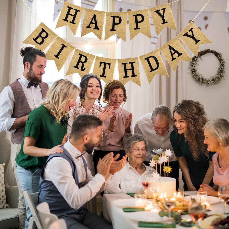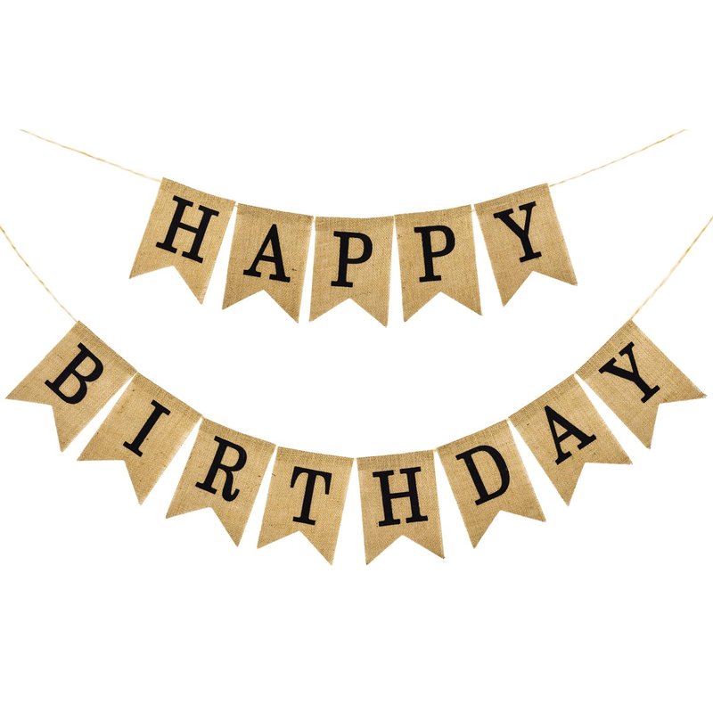 - Rustic & Durable Design: Features crisp black "HAPPY BIRTHDAY" lettering printed on natural burlap flags, offering a timeless, rustic charm. Made from premium waterproof burlap that resists fading and tearing for long-lasting reuse.