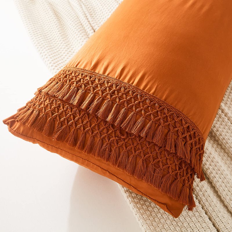 Burnt Orange Body Pillow Cover 20x54 inches Boho Chic Macrame Tassel Decor Body Pillow Case Cover with Pocket Closure(Body,Rust Tassel)