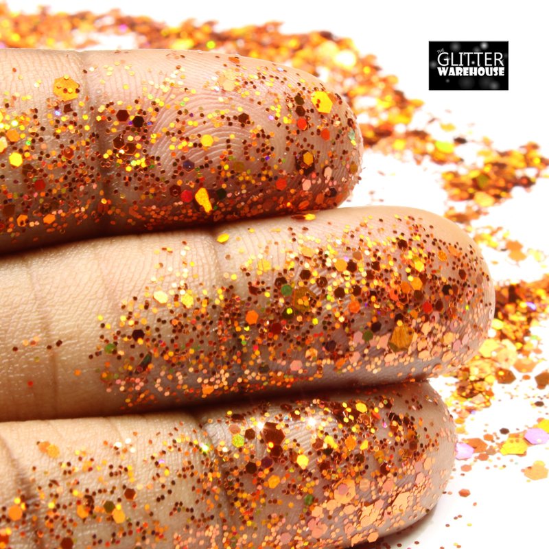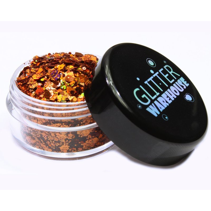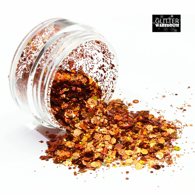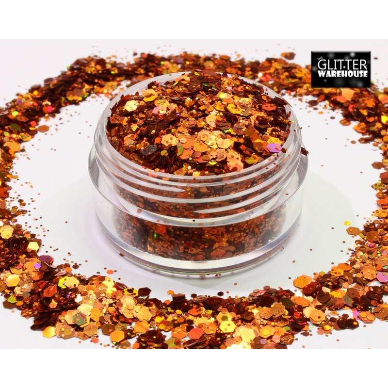 Burnt Orange Holographic Chunky Glitter Mix GLITTERWAREHOUSE COSMETIC GLITTER Loose Glitter Powder for Festival Beauty Makeup Face Body Hair Nails Eyes Lips (100g Bag)