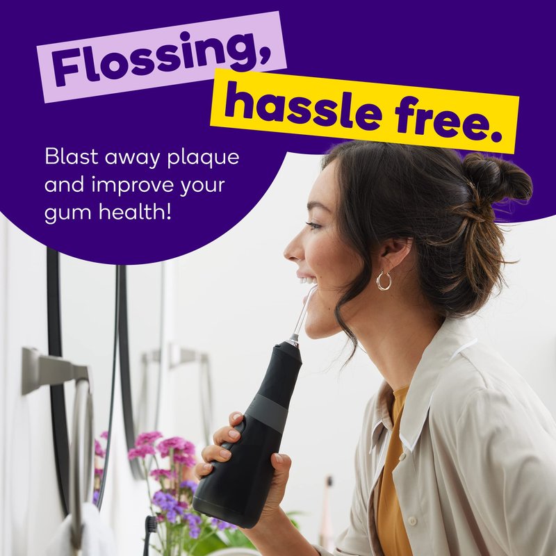- 80-DAY BATTERY LIFE*: Rechargeable and cordless water flosser has an ultra-long battery life on a single overnight charge, making it perfect for travel. Plus, the small and portable water flosser design makes BURST easy to take on-the-go! Includes a convenient travel bag.
