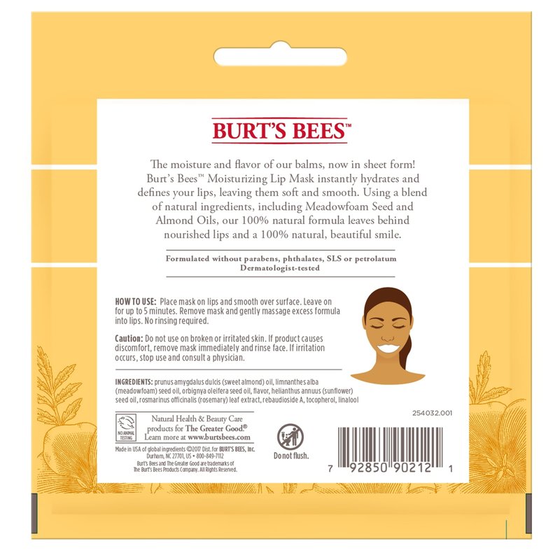 - SINGLE USE LIP MASK: Moisturize and define your lips with this single-use Burt’s Bees Lip Mask; packaging may vary