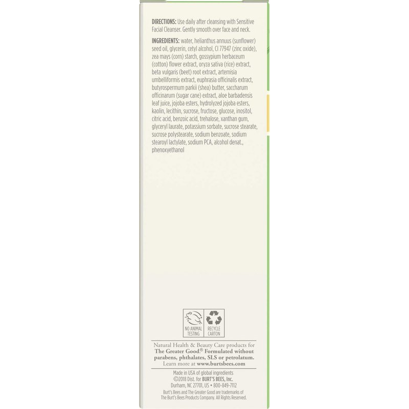 Burt's Bees Daily Face Moisturizer Cream for Sensitive Skin, 1.8 Ounces