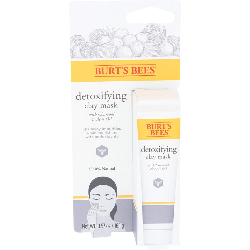 Burt's Bees Detoxifying Clay Mask lifts away impurities with charcoal while nourishing skin with antioxidants. This 99% natural charcoal clay mask is formulated to remove dirt, oil and toxins that can clog pores and cause skin to look dull. The detoxifying clay mask deep cleans and illuminates your skin with nature's best ingredients. Featuring superfruit ingredient such as acai, the rich antioxidants and nutrients leave skin balanced and healthy-looking. The purifying benefits of charcoal helps to absorb excess oil and extract impurities. It is gentle on your skin. This single use clay mask is easy to use so you can relax and give your skin a detox before bed. Apply an even layer to clean, dry face, avoiding eye and lip area. Allow mask to dry for 10-15 minutes and then rinse with water. Detox and brighten your skin with the natural cleansing experience of Burt's Bees Detoxifying Clay Mask. Usage Directions: Apply even layer to clean, dry face, avoiding eye and lip area. Allow to dry for 10-15 minutes. Rinse face with water. Caution Statements: Do not use on broken or irritated skin. If product causes discomfort, remove mask immediately and rinse face. If irritation occurs, stop use and consult a physician.
