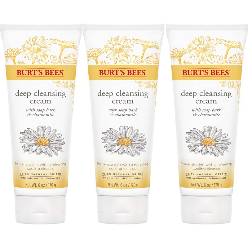 Burt's Bees Face Wash, Deep Facial Cleansing Cream, All Natural Cleanser with Chamomile, 6 Ounce (Pack of 3) (Packaging May Vary)