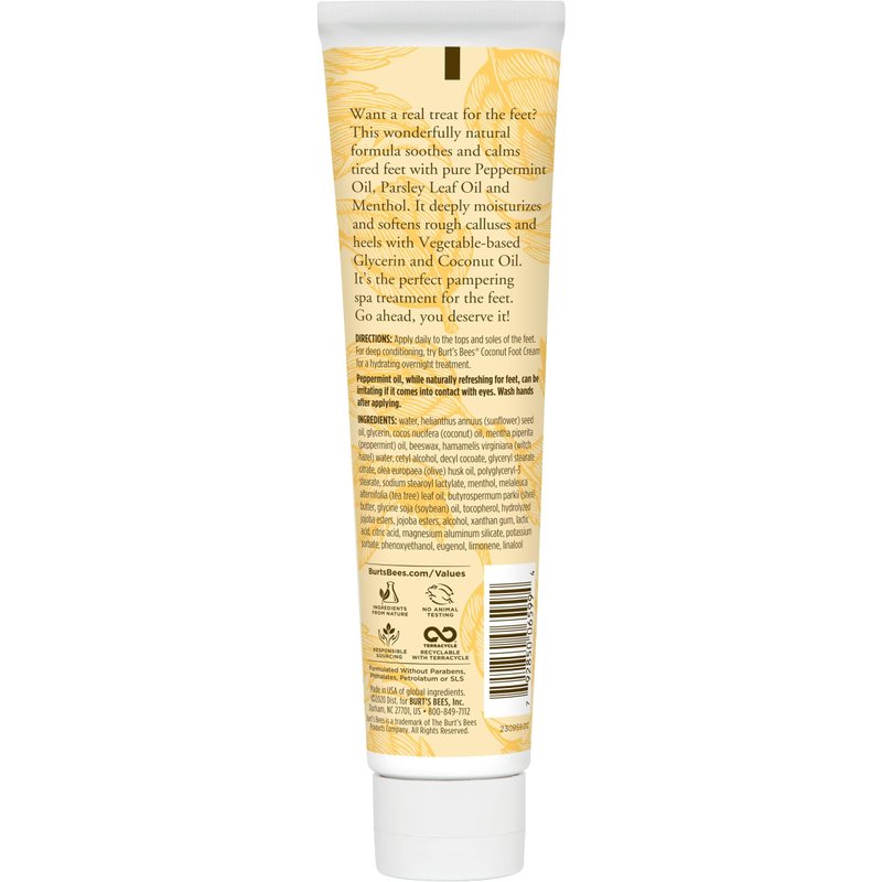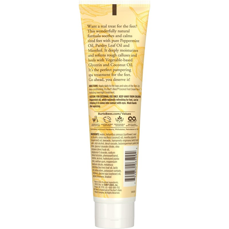 - BURT’S BEES RELAXING FOOT CREAM: With Burt's Bees peppermint oil foot lotion deeply moisturize and soften rough, calloused heels with a soothing formula helping you to put your best feet forward; Package may vary