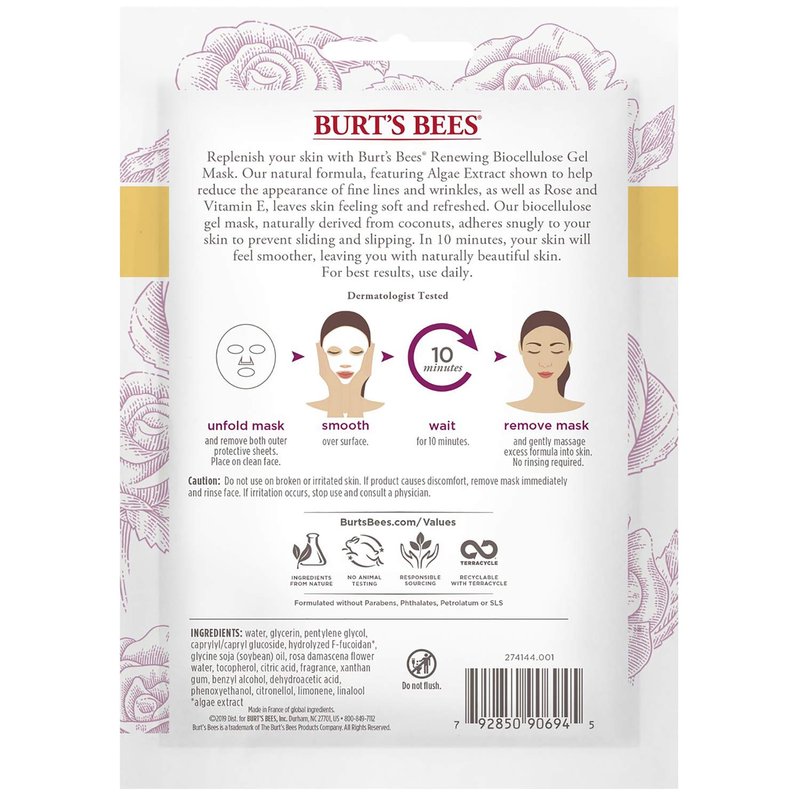Burt's Bees Renewing Biocellulose Gel Face Mask, Rose