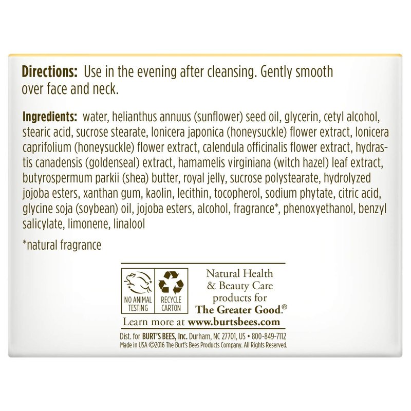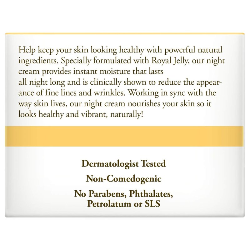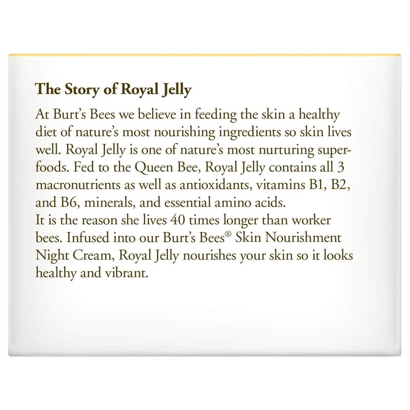 - FACE CREAM: Formulated with Royal Jelly, one of nature's most nourishing and hydrating substances, Burt’s Bees nourishing night cream enhances the skin for a natural radiance and youthful glow