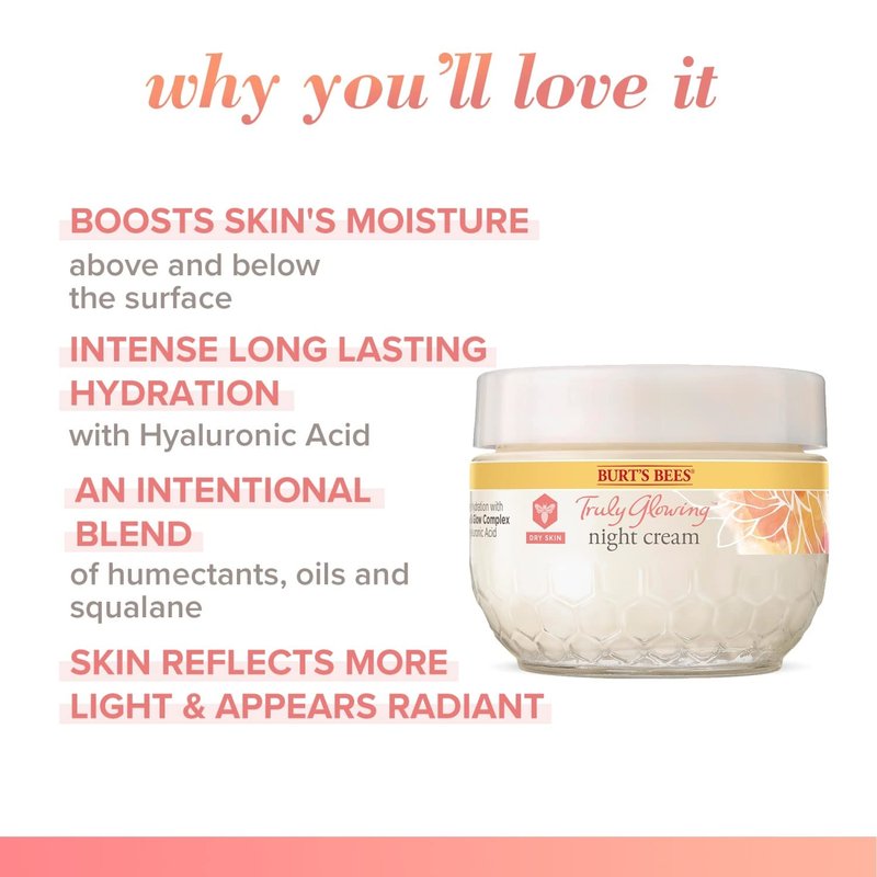 Burts Bees Truly Glowing Night Cream - Dry Skin Unisex 1.8 oz, White