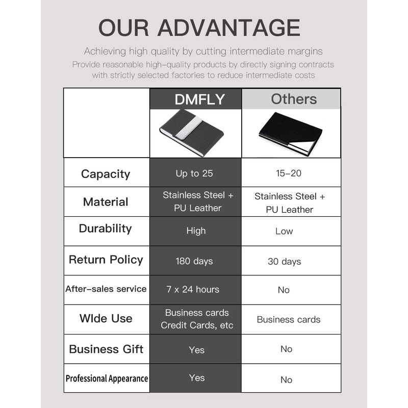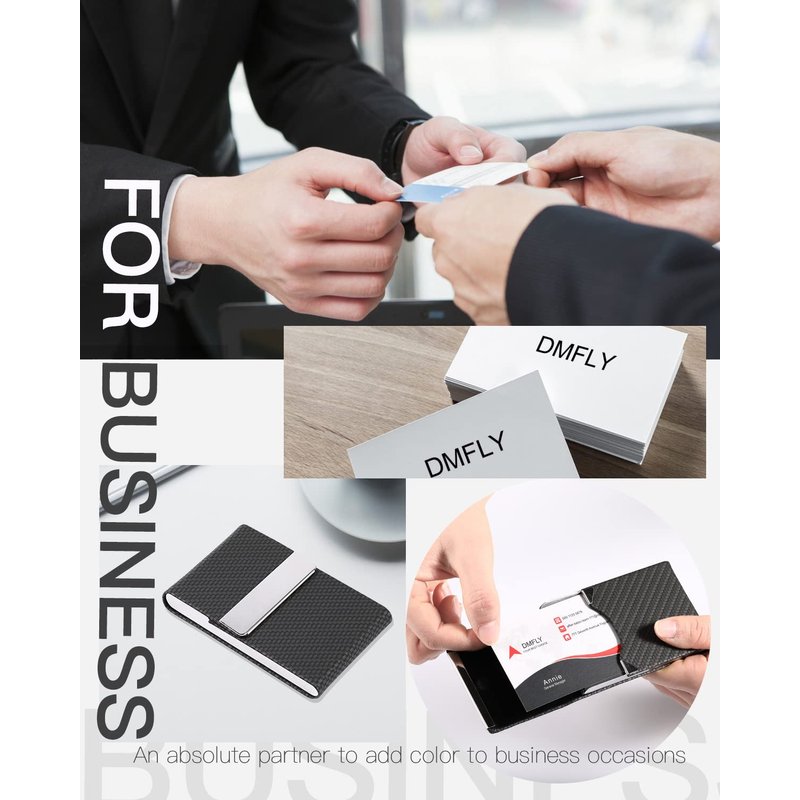 - DMFLY leather business card holder case - Perfect purse size and classy looking, let you feel confident pulling it out of your pocket and handing somebody a card.