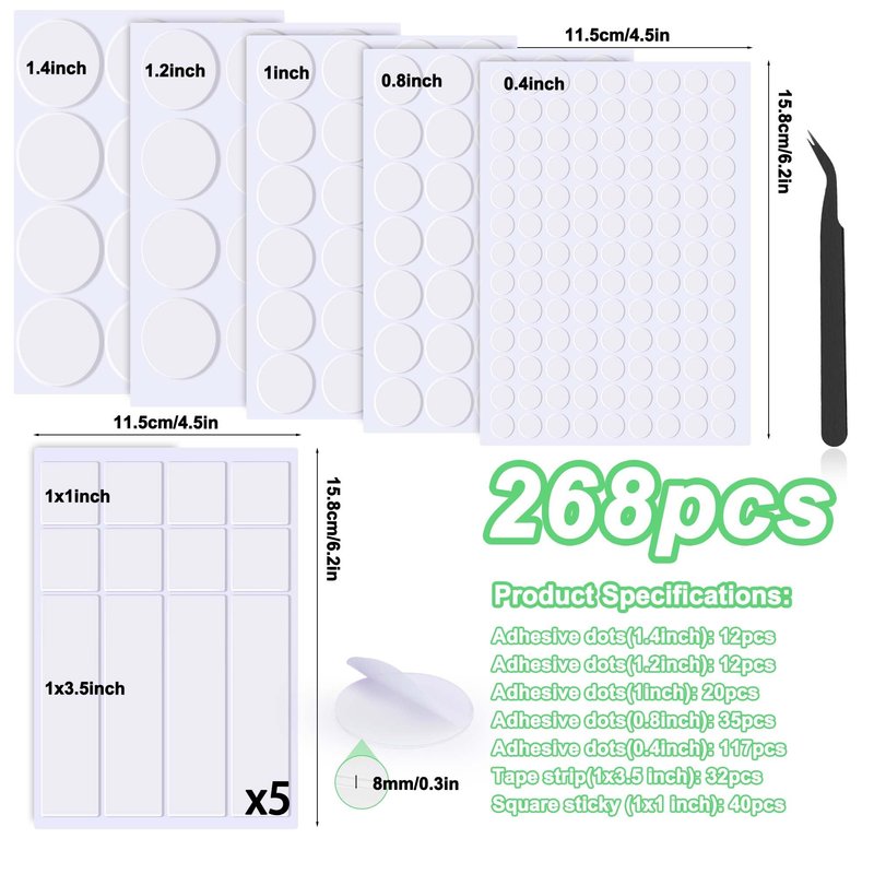 BUSOHA 268PCS Sticky Tack for Wall Hanging, Double Sided Sticky Dots in Different Size, Adhesive Putty Sticky Tack Dots Removable Clear Waterproof Poster Putty for Pictures Festival Decoration